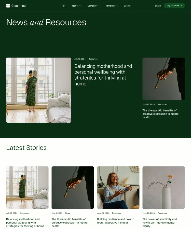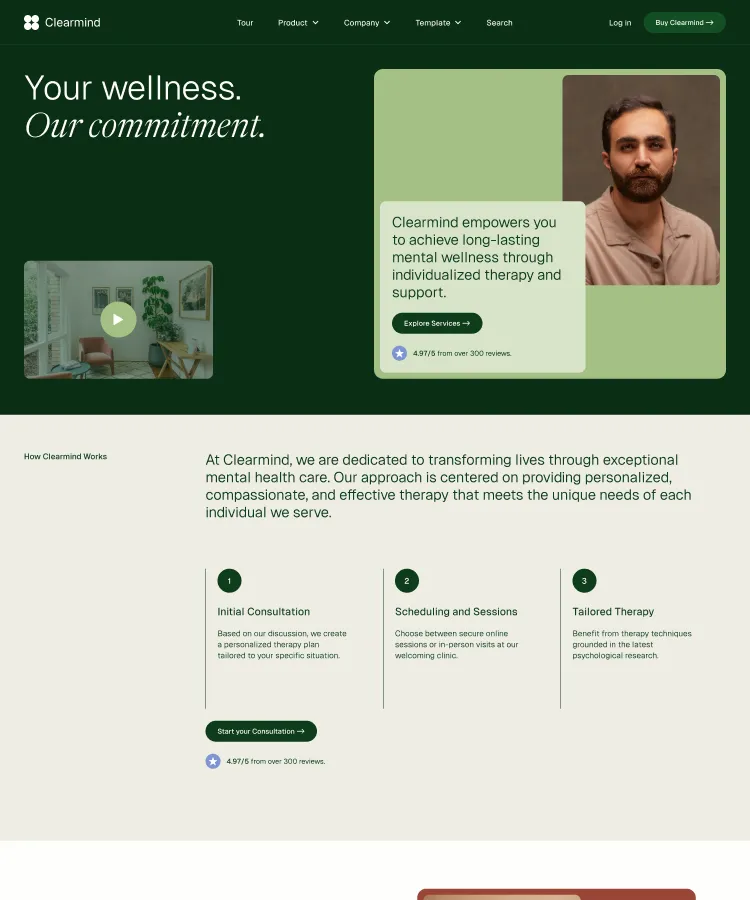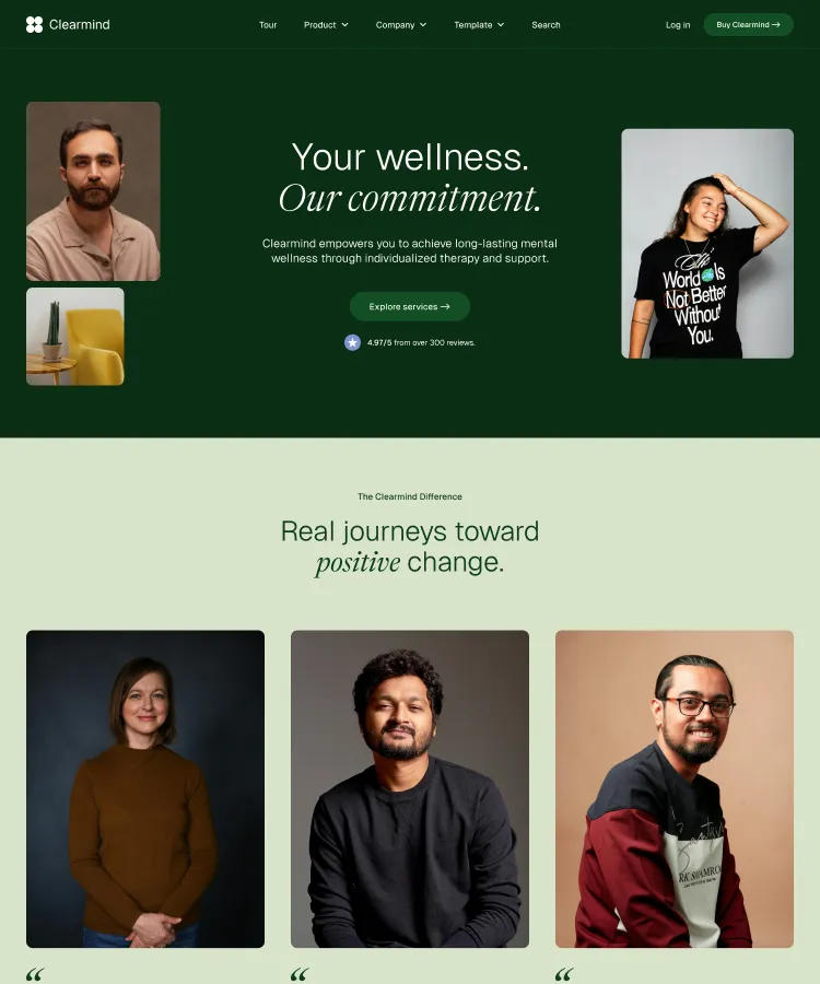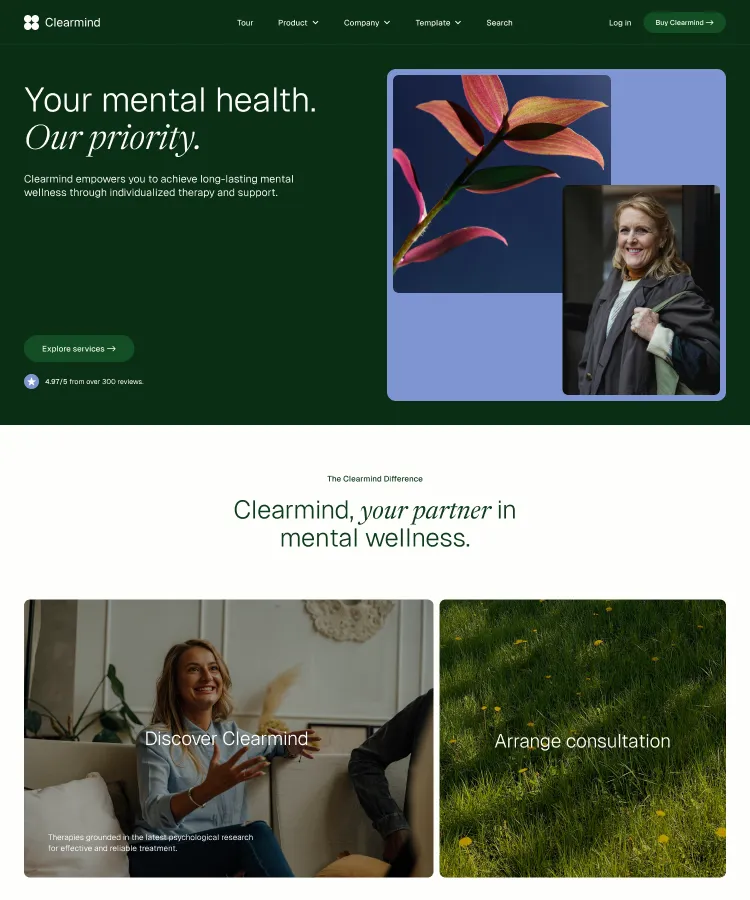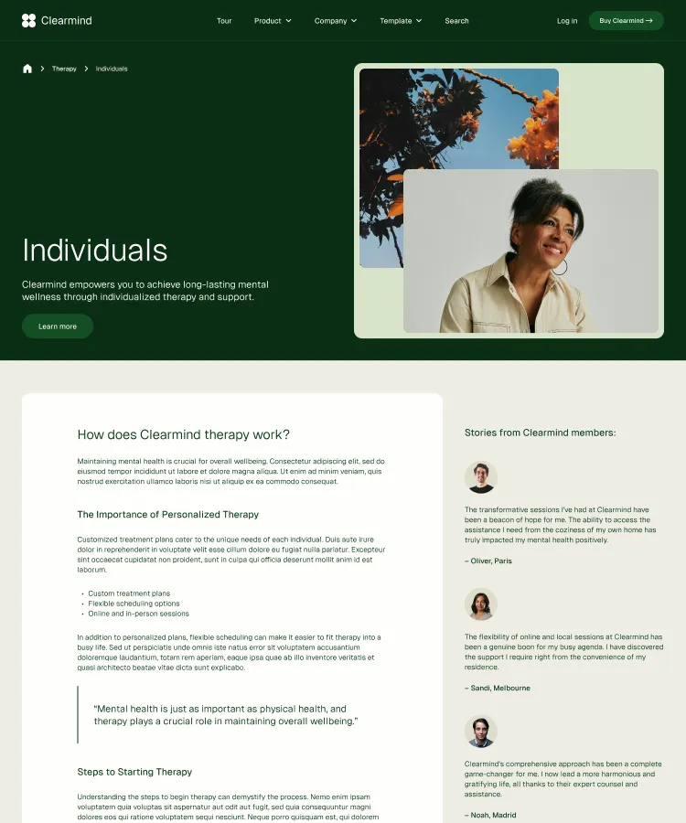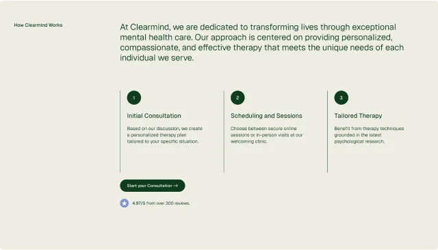 Building robust, stylish pages is a snap with Clearmind's section designs. Simply copy and paste sections to construct your perfect page.