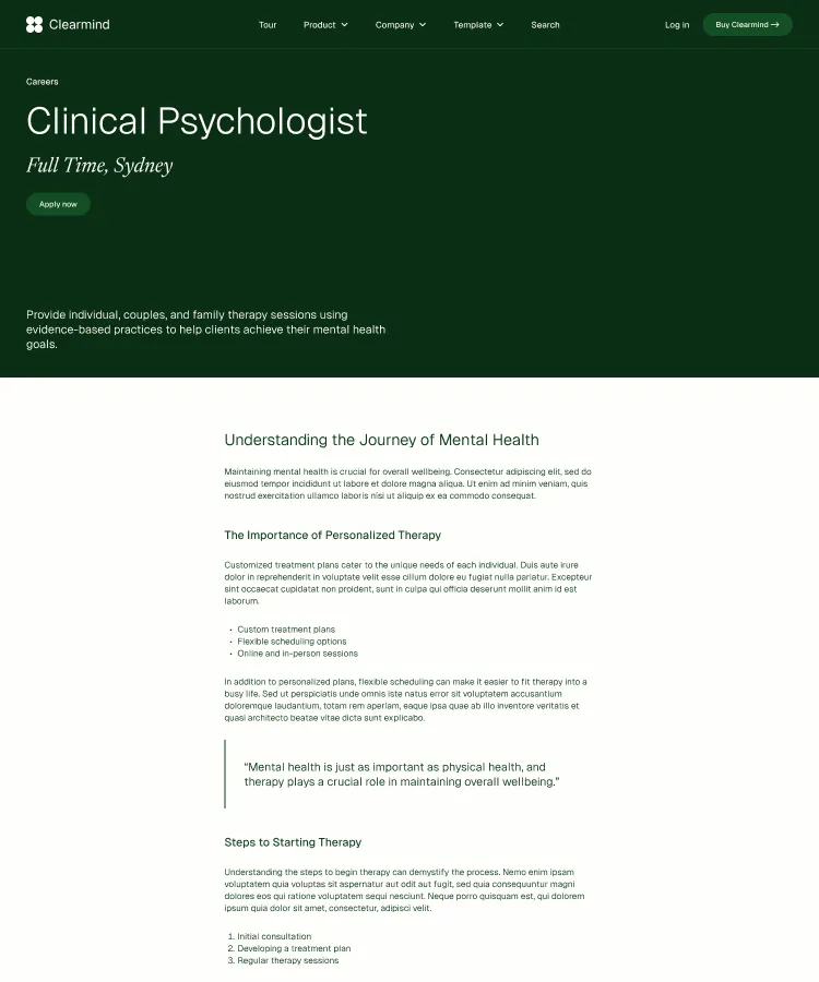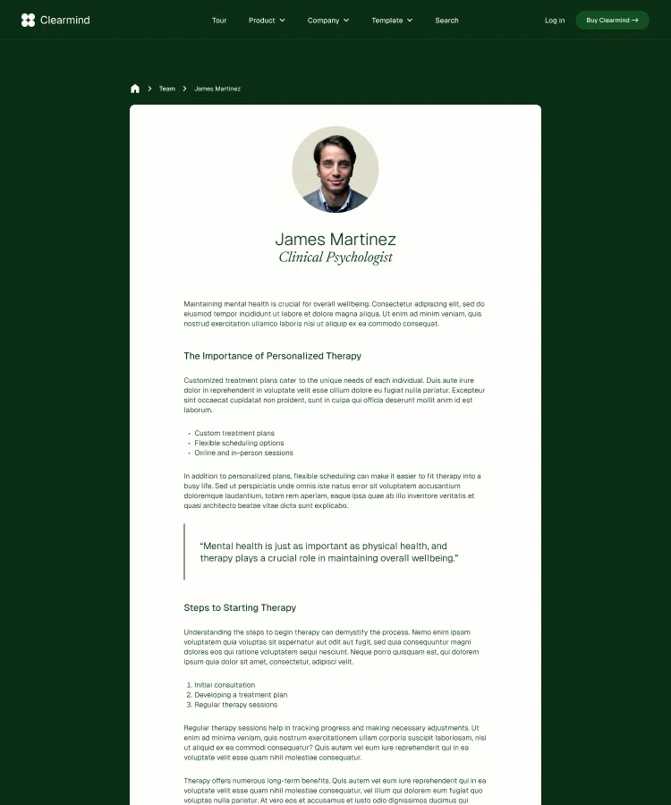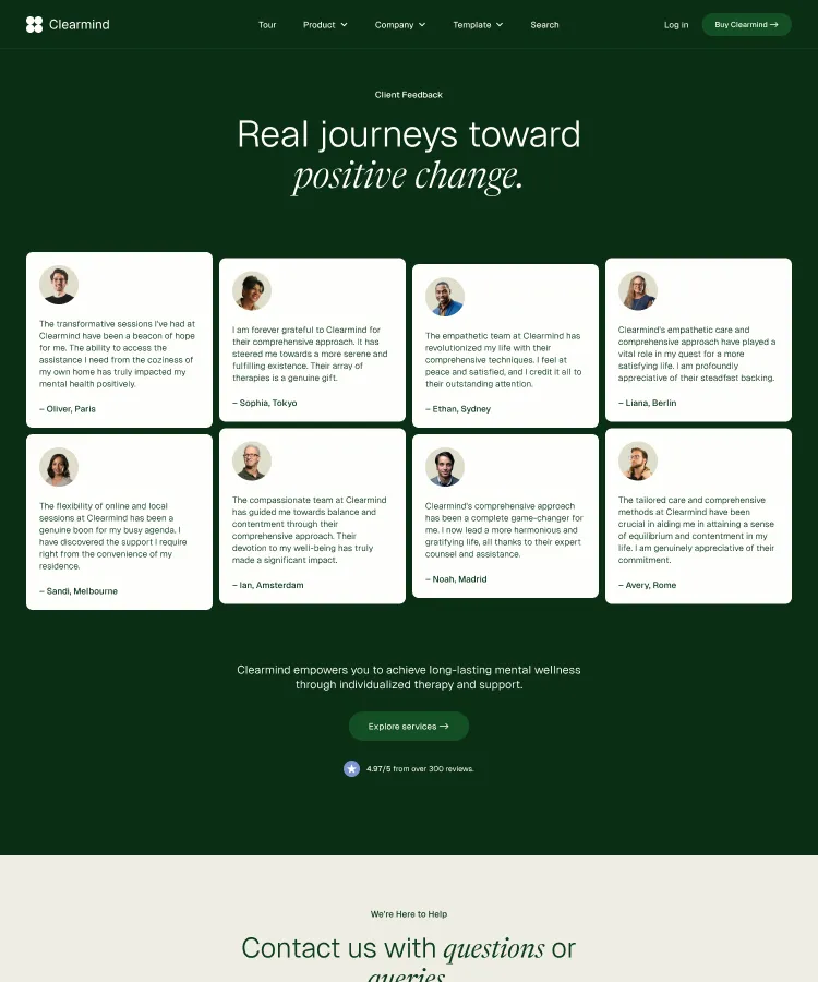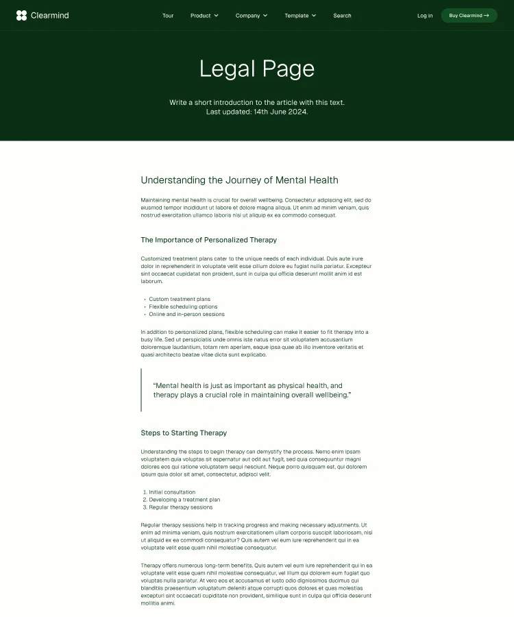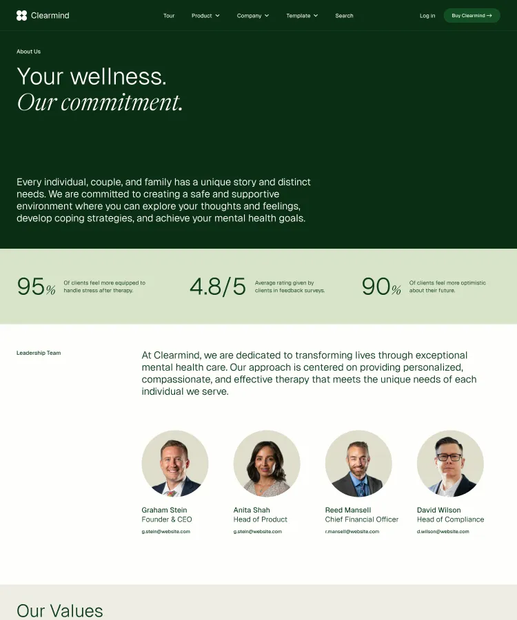Building robust, stylish pages is a snap with Clearmind's section designs. Simply copy and paste sections to construct your perfect page.