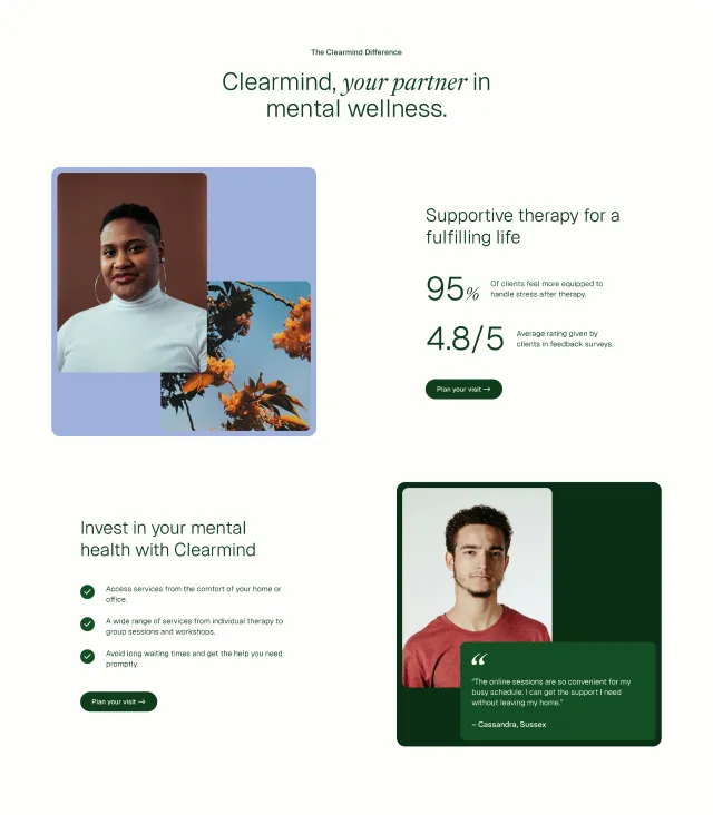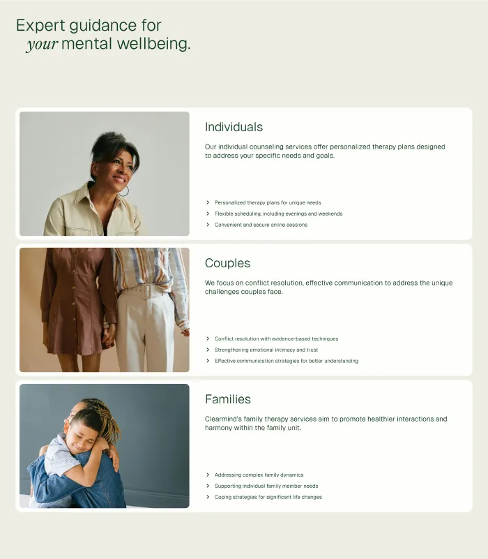 Clearmind empowers you to achieve long-lasting mental wellness through individualized therapy and support.